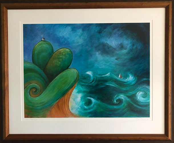 Stormy Sea Print When nature is at her fierce man seems small and vulnerable. This is a framed print.